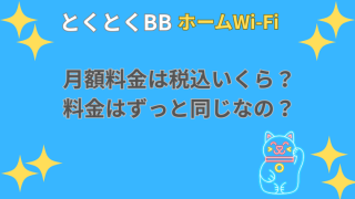 とくとくBBホームWi-Fi とくとくBBホームWi-Fiは月額料金は税込いくら?料金はずっと同じなの?完全解説 とくとくBBホームWi-Fiの月額料金は税込4,928円でずっと同じ。初期費用や端末代も実質無料で安心の定額制。初心者にもわかりやすく料金体系を解説します。 2025.10.02 とくとくBBホームWi-Fi