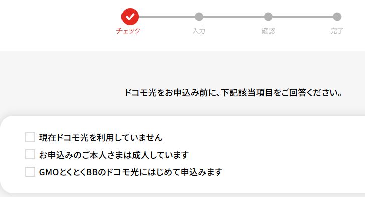 - ①[GMOとくとくBB ドコモ光 申し込みサイト] にアクセス