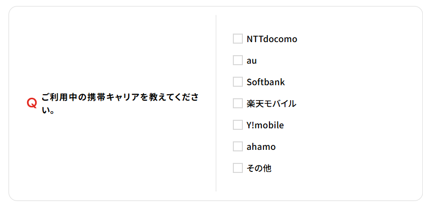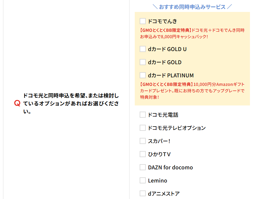 オプションが増えればキャッシュバックの金額も増えます。 - ⑥現在ご利用中の携帯電話にチェック