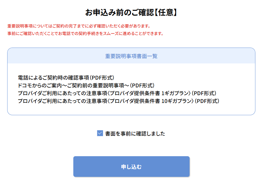 - ⑦説明事項を確認のうえ最終チェックをして申し込み