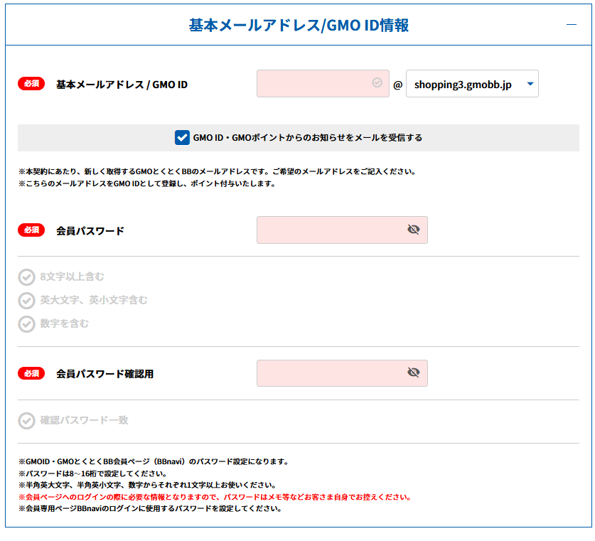 ・GMO ID / パスワード(英数字大文字小文字含む)