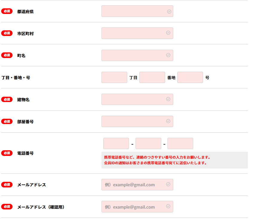 ・電話番号・郵便番号は半角で入力