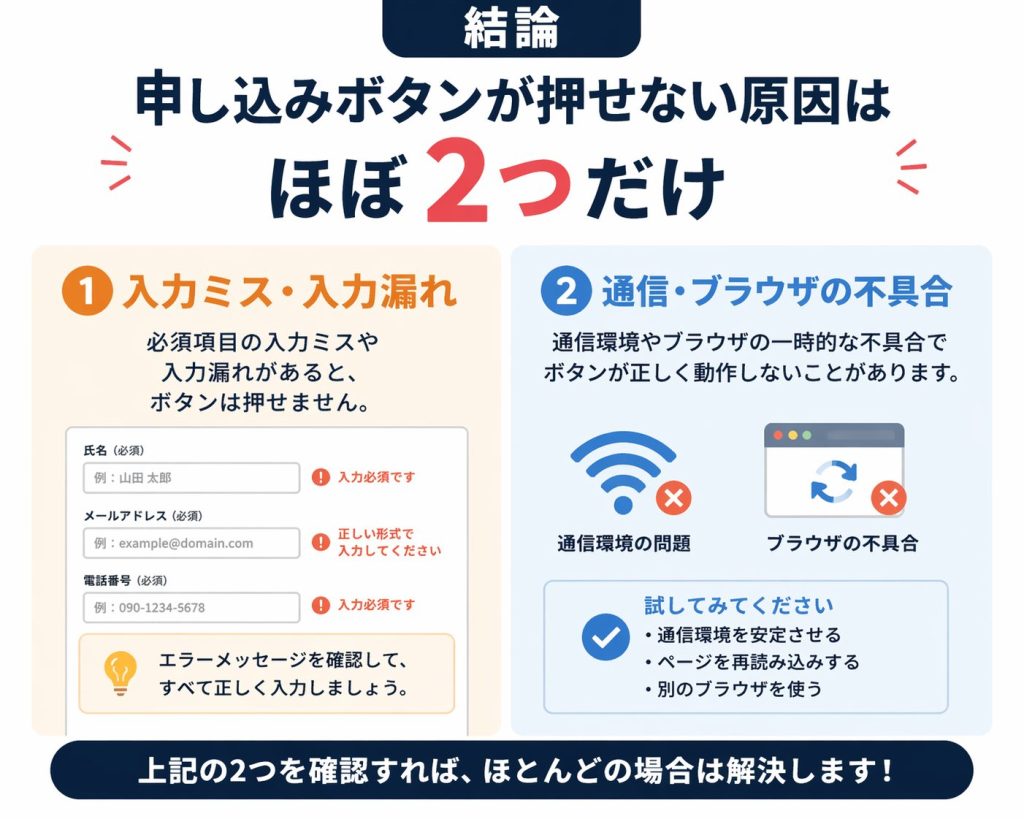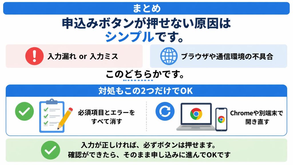 【結論】申し込みボタンが押せない原因はほぼ2つだけ