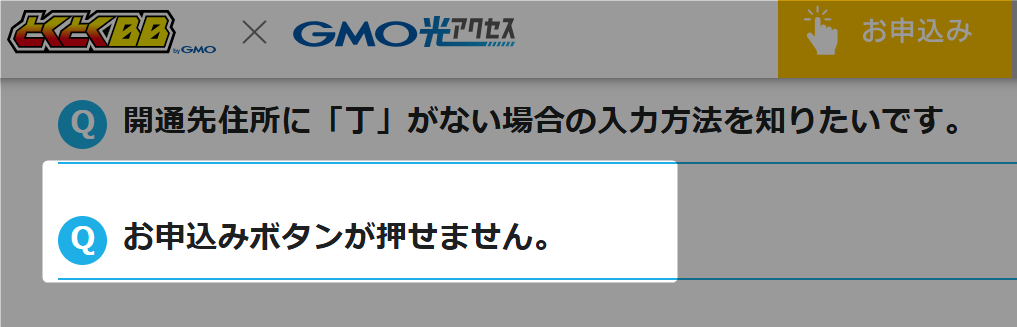 GMOとくとくBB光を申し込もうとしたときに、「申し込みボタンが押せない」