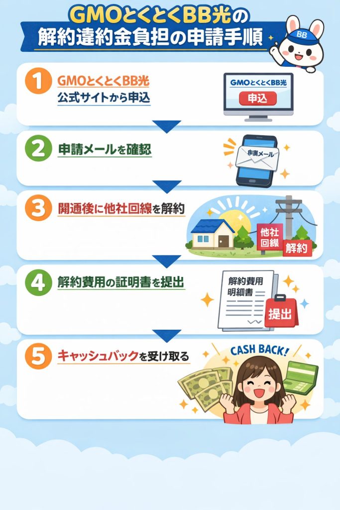 GMOとくとくBB光の解約違約金負担の申請方法の流れはシンプルです。